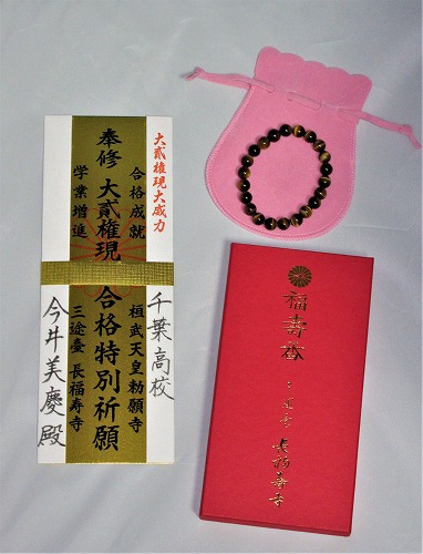 ※学業増進・必勝合格の念を込めた御護りの石【最高級イエロータイガーアイ】のブレスレットと、勉強への集中力が飛躍的に増大する特別配合のお香【長寿香】を特別授与します。