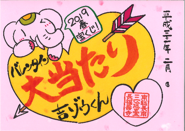 1つはバレンタインという事で、ピンクの和紙を使ったハートが大きく書かれた御朱印です。