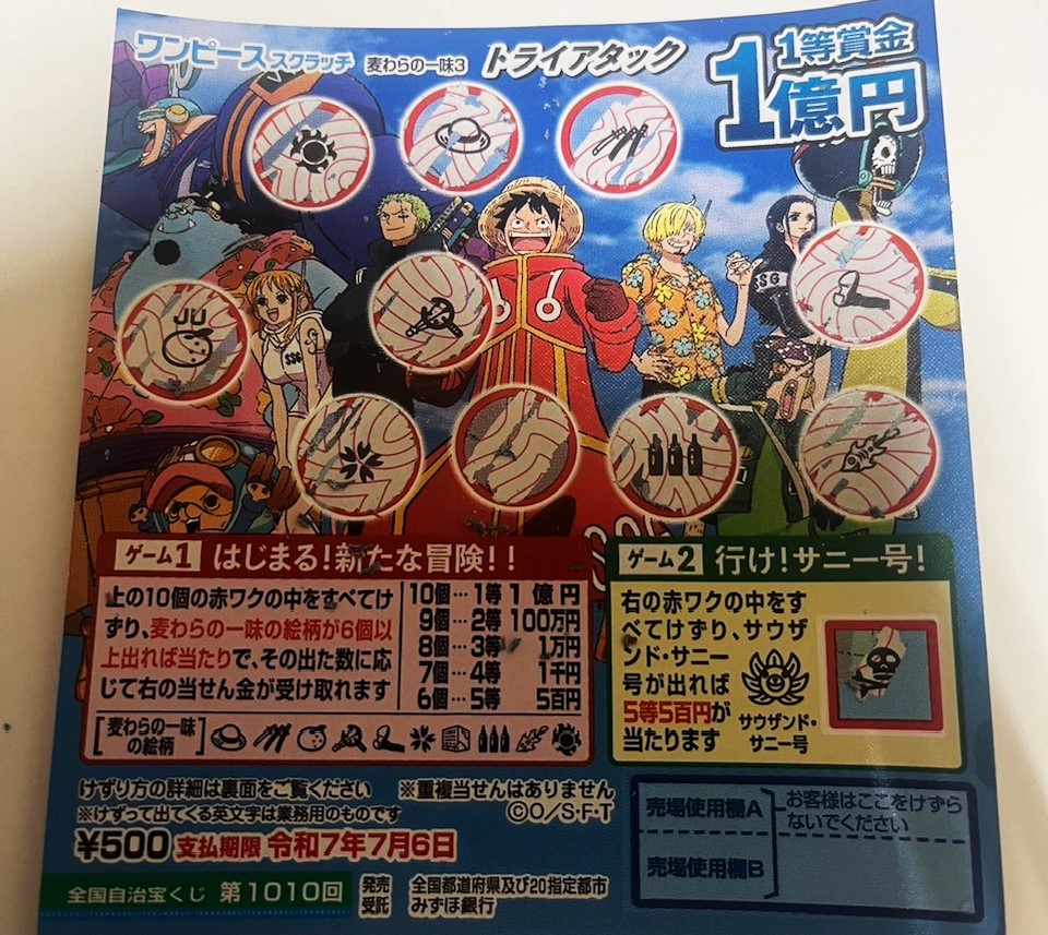 \ワンピース・スクラッチ300万円、240万円、127万円、100万円当選の実績/