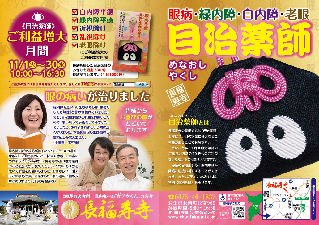 ※特に、11月8日は、目治薬師の大御縁日で、一年で一番ご利益が絶大な日です。