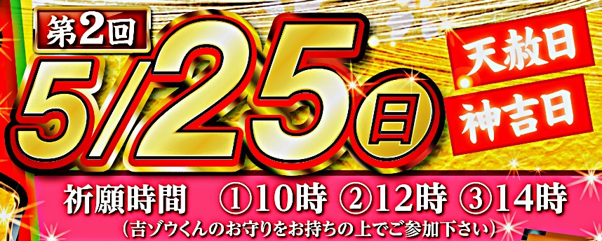 【雨でも開催します!】5月25日は《最強大開運祈願祭》