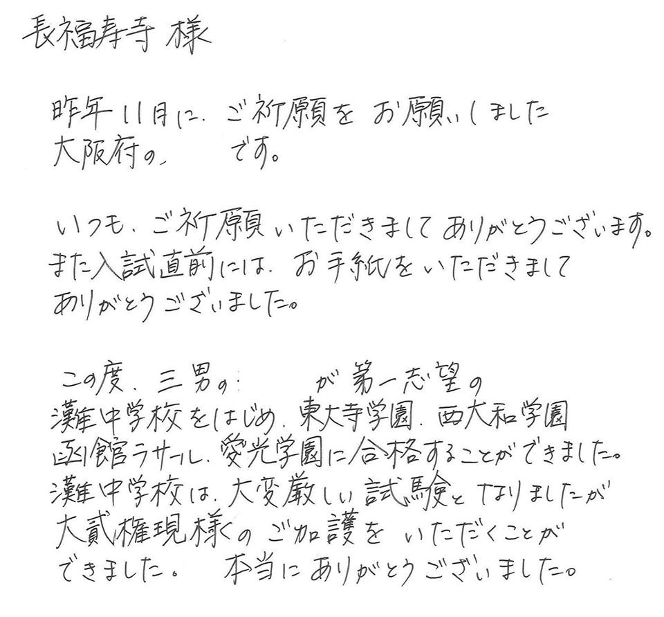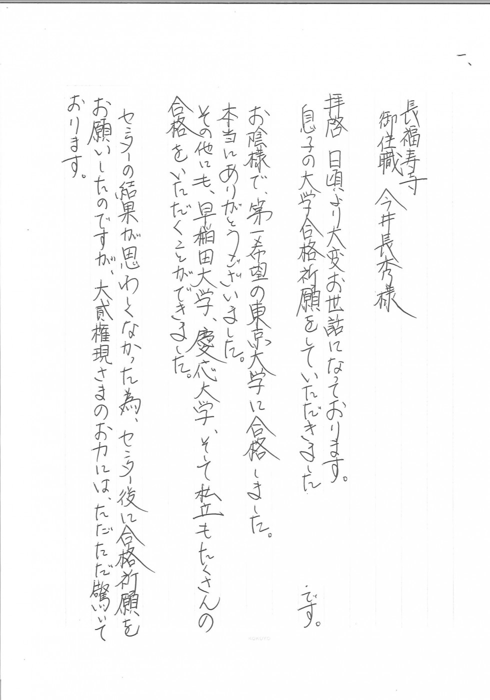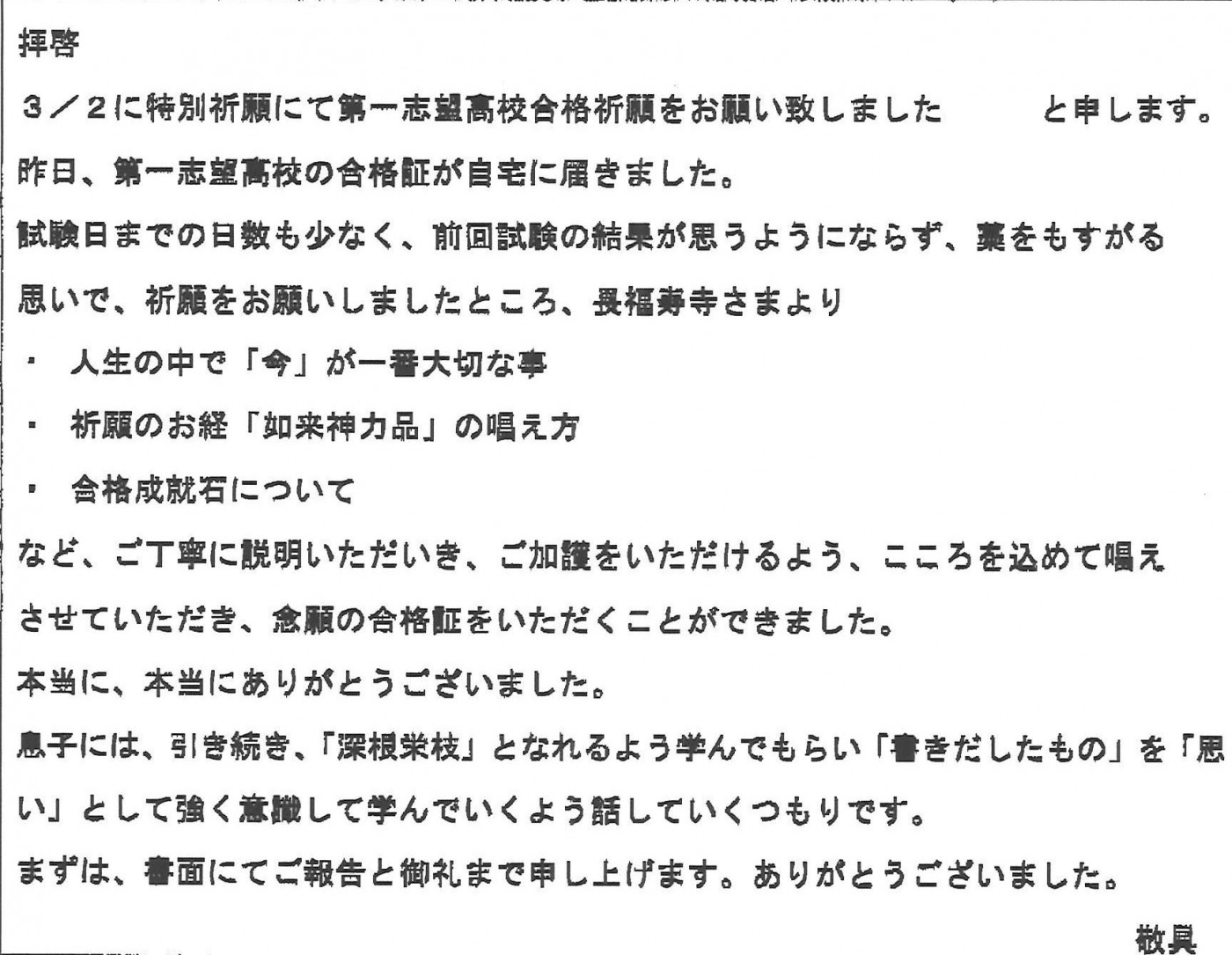 長福寿寺で合格祈願を修し、見事に合格された方からも