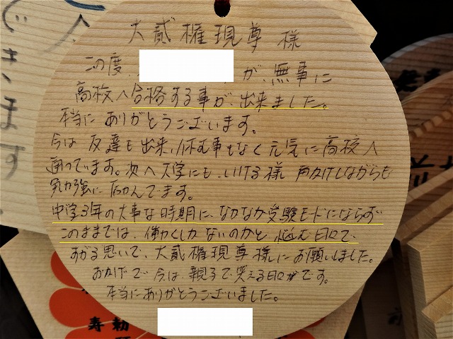 次男が高校受験生となりますので、また改めてご祈願を依頼させて頂きたいとおもっております。
