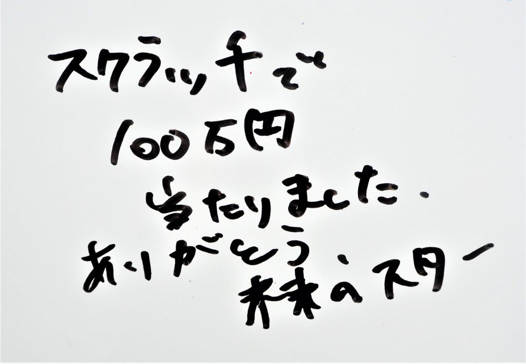 スクラッチで100万円当たりました。