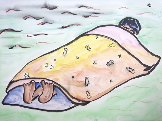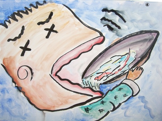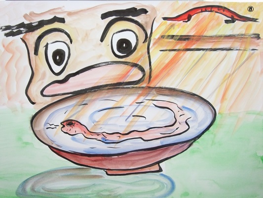 「あ~赤ヘビを飲んでしまった。お腹の中に赤ヘビが入った、赤ヘビが入った。」