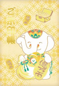 吉ゾウくんが飛び出す「立体型」のご朱印です。