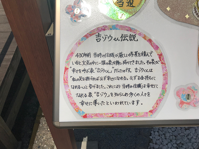 足元に書いてあった「吉ゾウくん伝説」。