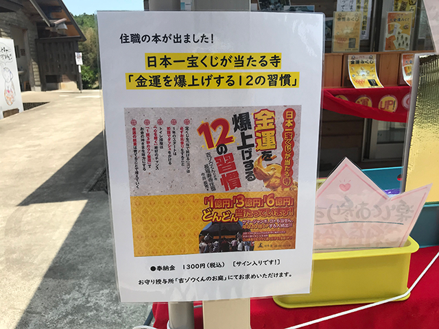 お寺の右側には吉ゾウくんの金運グッズ、結愛(ゆめ)ちゃんの縁結びグッズが並ぶ売店もありました。