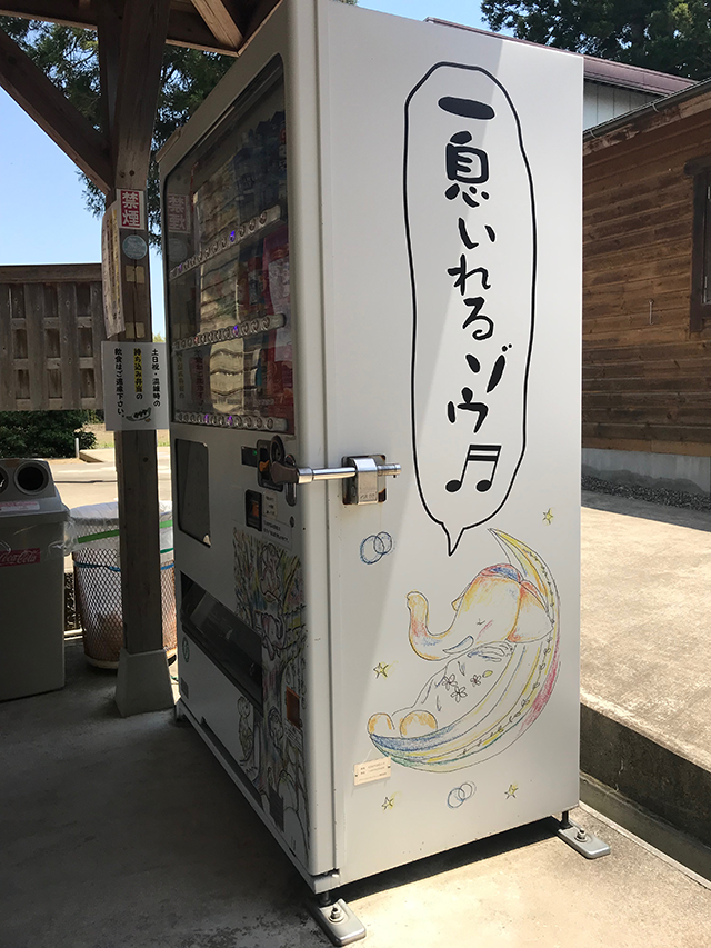 休憩所の自動販売機にまで吉ゾウくんが・・・、と思ったけど、キャラから考えると結愛(ゆめ)ちゃんかもしれません。