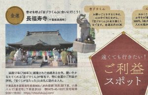 「お金が欲しい方」「宝くじを当てたい方」は、ぜひ千葉県の長福寿寺・吉ゾウくんにお参り下さい。