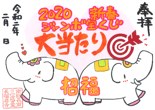 今日は明日2月16日(日)に開催される『ジャンボ宝くじ大当たり祈願祭』で授与される【特別限定御朱印】で授与される吉ゾウくんの【特別限定御朱印】のご紹介ですよ~♪(^_^)