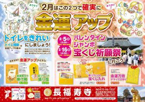 長福寿寺では例年、ジャンボ宝くじの「大当たり祈願祭」を行っており、今年も同じ名称で2月16日に開催するという。