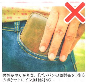 なお、特に男性の方に多いのですが、お財布をお尻のポケットに入れることはNGです。
