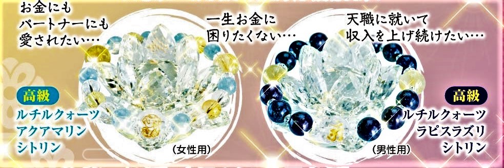金運アップはもちろん、多面的な『幸せ』を掴めるように、パワーストーンを組み合わせました。