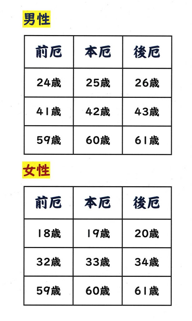 《2021年 厄年早見表》
