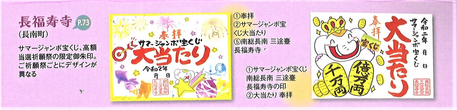 ただし、吉ゾウくんの特別ご朱印は毎回変わりますので、この本に掲載されている特別ご朱印は今は授与しておりません。(2020年の「サマージャンボ宝くじ【高額当選】特別ご朱印」が紹介されています)