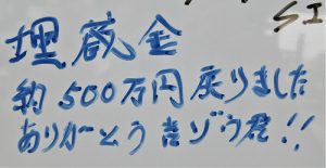 埋蔵金、約500万円戻りました。