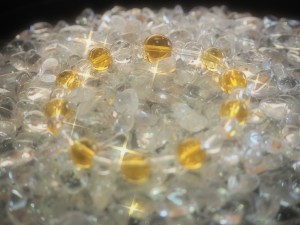 就寝時に手首から外して、「水晶(さざれ石)」の上にパワーストーンブレスレットを置くだけOK。