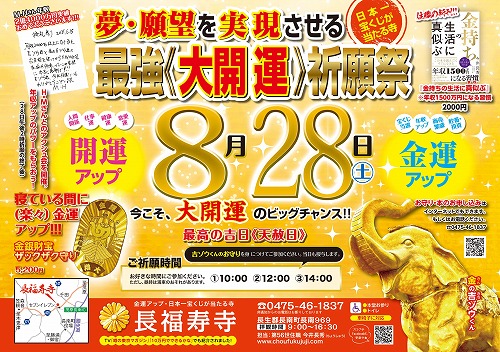 8月28日の【最強大金運日】【最大開運日】に長福寿寺の僧侶一同にて一心に祈願するものです。