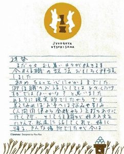 を読んだ方から、直筆のお手紙が届きましたので、皆さまにもご紹介させていただきます。