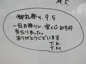 宝くじ【10万円】あたりました。