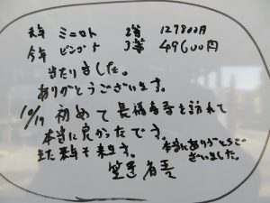 ミニロト【12万9800円】、ビンゴ5【4万9600円】当たりました(笠置様)