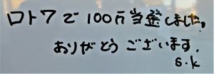 ロト7で【100万円】当選しました。