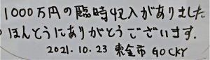 【1000万円】の臨時収入がありました。(GOCKY様)