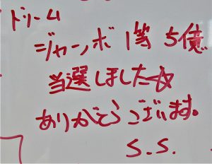 また、先日は「100円BIG1等1億円当選しました」とお礼参りの方が来て下さいました。