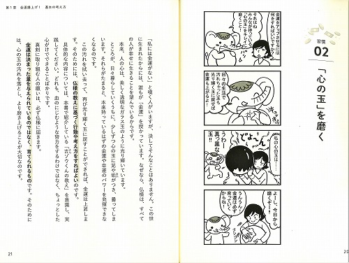 本書では、仏様の教えに基づいた50の金運爆上げ術を、4コマ漫画でわかりやすく解説。