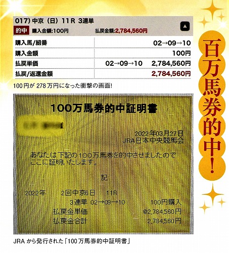 【体験談】競馬で100円が278万円に! K.I様(56歳・会社員)