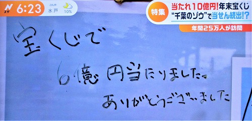 一昨年は、宝くじで「6億円当たりました!」との喜びの声をいただきました