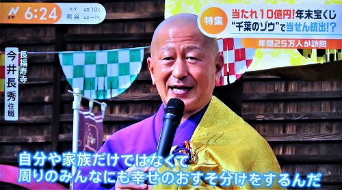 日本一の金運寺・日本一宝くじが当たる吉ゾウくんの長福寿寺 第56世住職 今井長秀です。