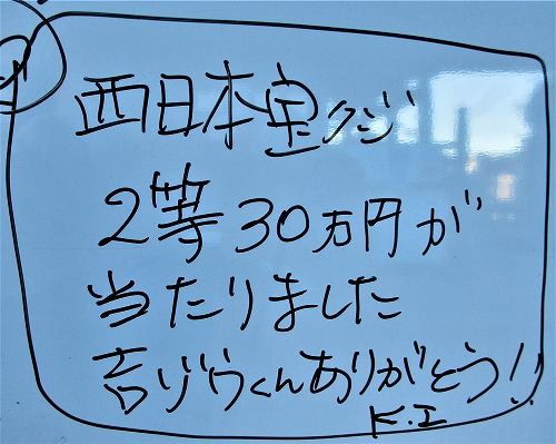 西日本宝くじ【2等 30万円】当たりました(K.I様)