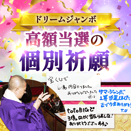 あなたのためにドリームジャンボ宝くじ《高額当選》の【個別祈願】を厳修します。