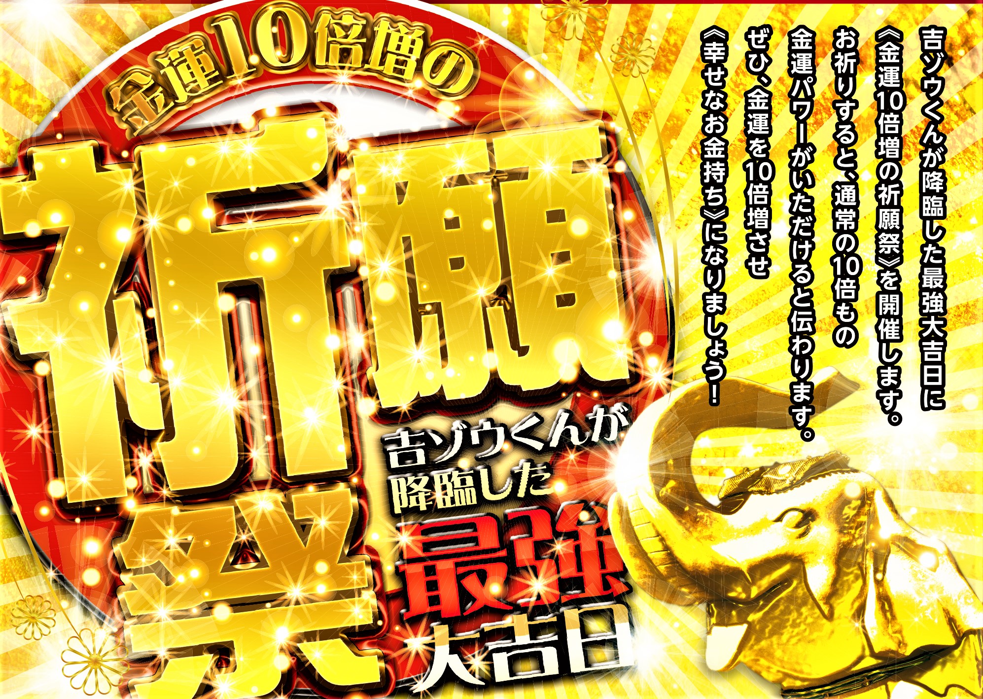 吉ゾウくんが降臨した最強の大吉日に【金運10倍増の祈願祭】