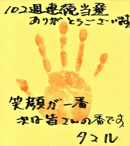 \102週連続当選記念《宝くじ当選セット》/田丸さん[サイン&手形]付