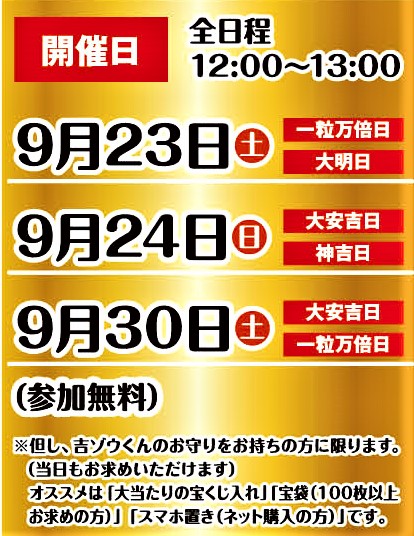 ③ 9月30日(土) 大安吉日&一粒万倍日 (時間)12時~13時