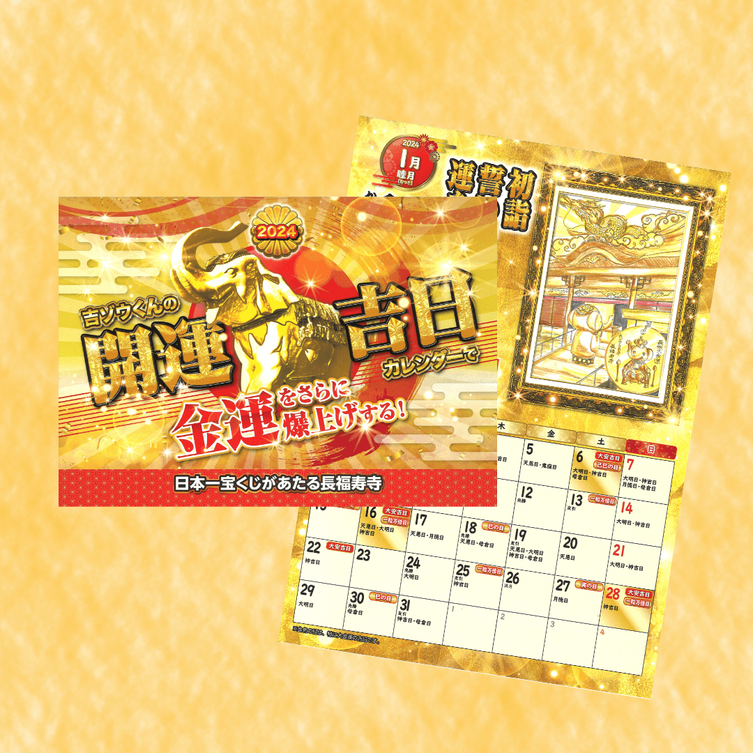 この2024年版『吉ゾウくんの開運吉日カレンダー』は、金運を爆上げするための特別なご祈願をした特別なカレンダーです。