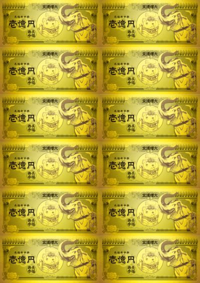 黄金の『吉ゾウくんお札シール』全12枚。