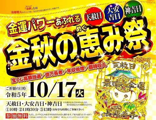 \明日!/今年最後の《最強大金運日》祈願祭 『金秋の恵み祭』(10月17日)