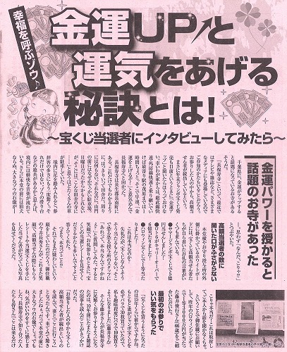 疑わしいという顔をしていたら、ご住職の今井長秀さんが高額当選の際にもらうレシートや当せんした宝くじを手に持っている当選者の写真を見せてくれた。