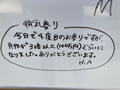商売繁盛で、月収がなんと驚きの3,000万円!になられたとのこと。
