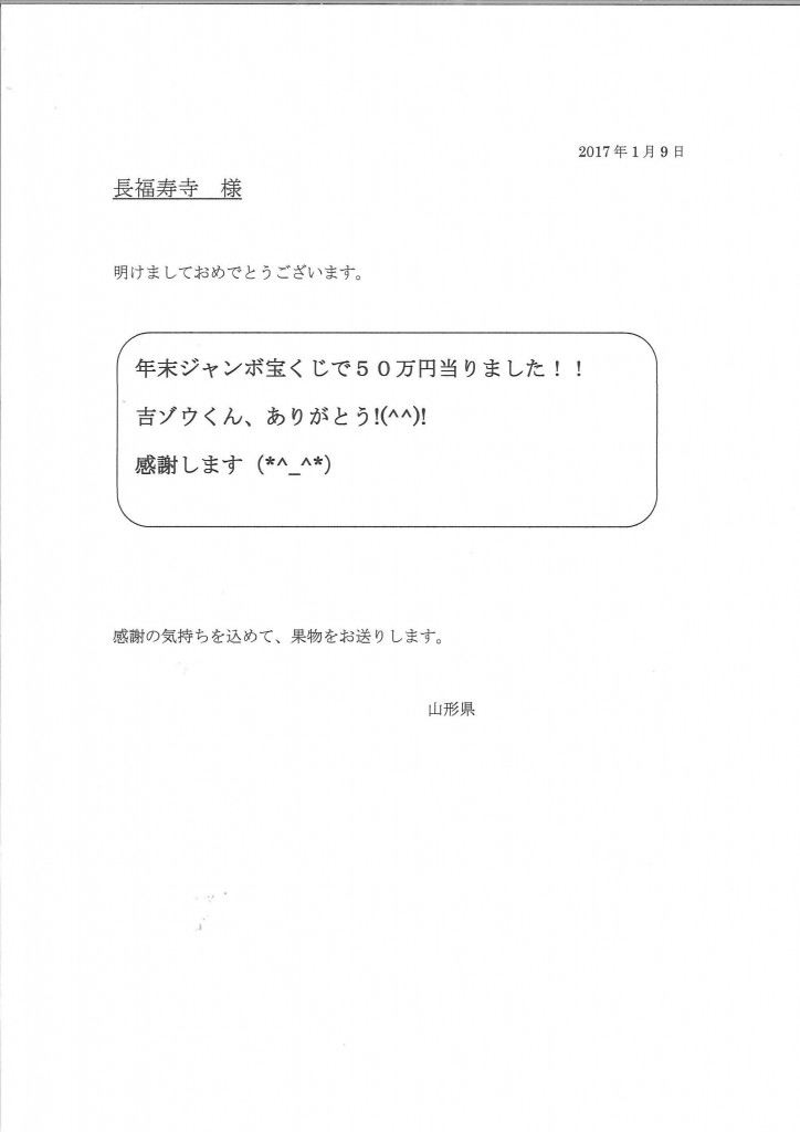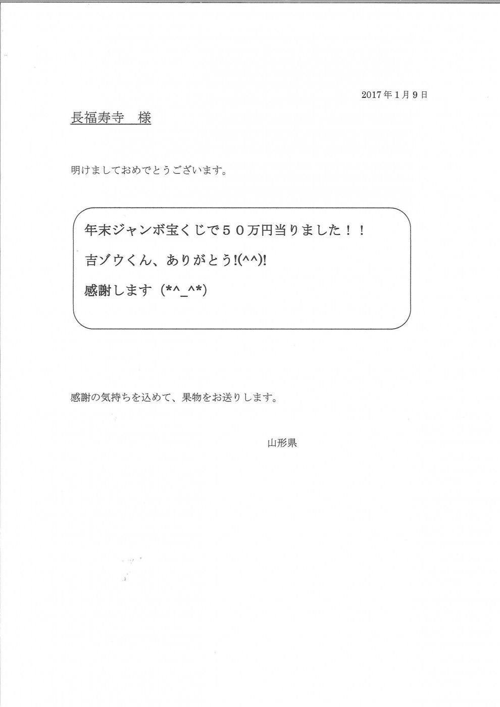 山形県のH.Tさんが年末ジャンボ宝くじで50万円を当てました。