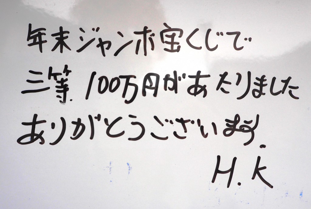 年末ジャンボ宝くじ当選の「喜びの声」が届いています。