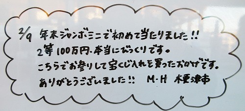 年末ジャンボミニ【100万円】。本当にびっくりです。 (М.H様)