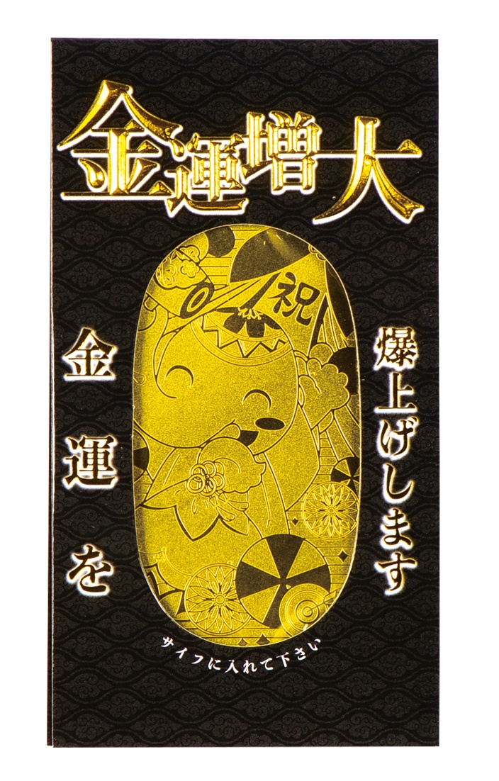 なお、黒色の包装紙は取り除き、小判型のお守りのみを財布に入れてください。