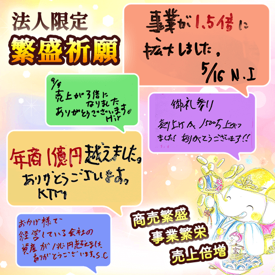 \法人様限定/『商売繁盛』『事業繁栄』『千客万来』の特別祈願