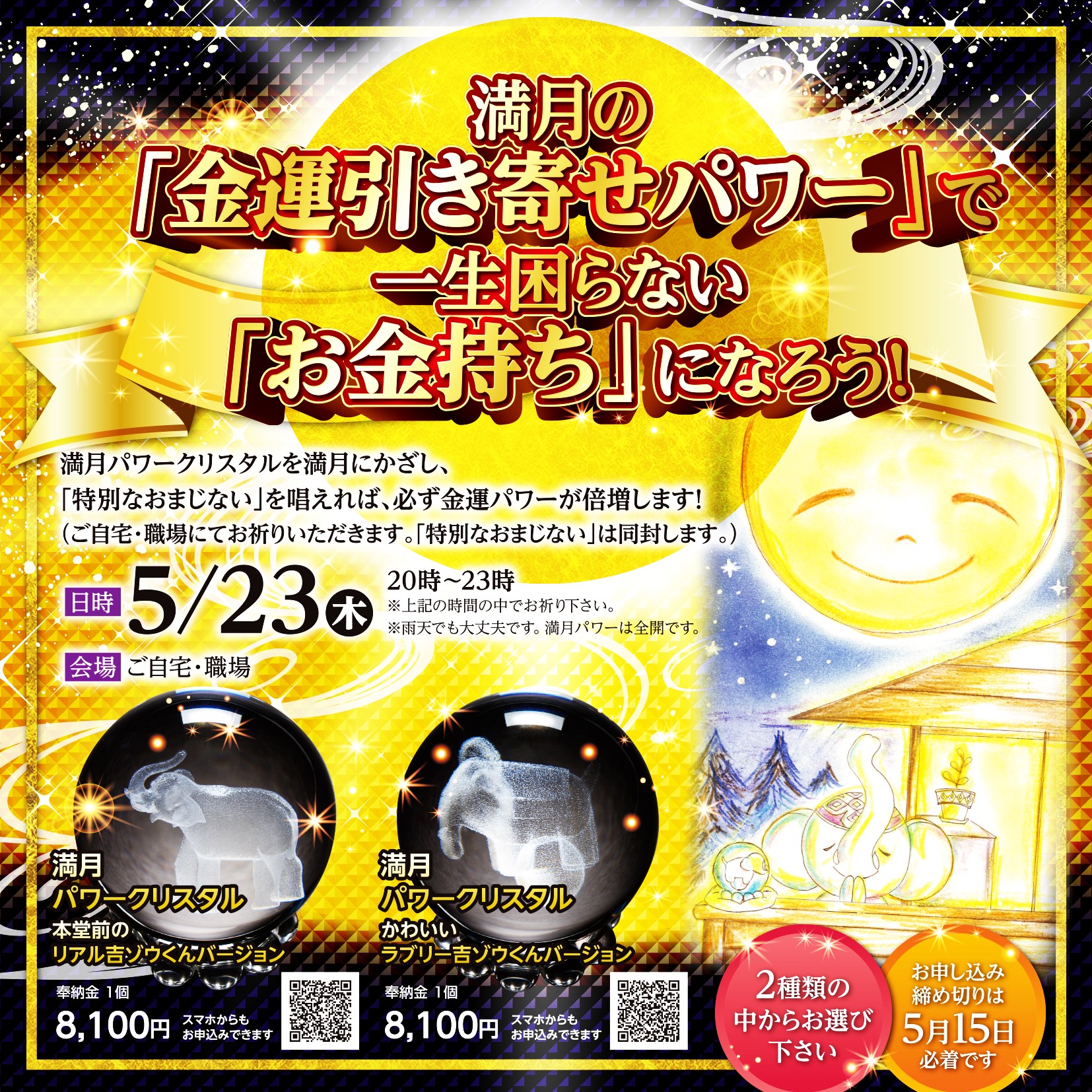 満月パワークリスタルを5月23日の満月にかざし、「特別なおまじない」を唱えれば、必ず金運パワーが倍増します!(※特別なおまじないは同封します)