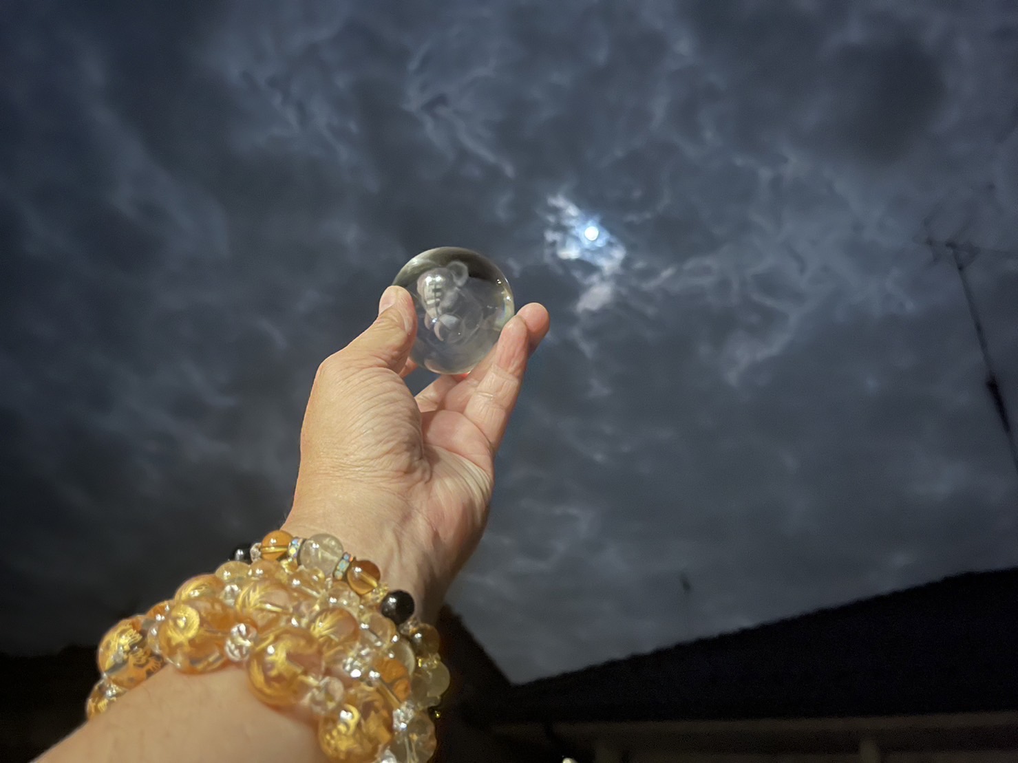 満月パワークリスタルを満月に掲げたら手が光りました♡ ↓